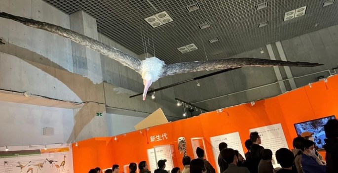 2600万年前に生息した絶滅鳥類、飛べる鳥の中で史上最大級、ペラゴルニス・サンデルシ Pelagornis sandersi の生体復元模型。