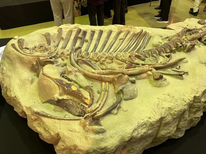 やっぱり水棲生物で、推定される巨体の割には大型の陸生恐竜と比べて椎骨が小さい印象でした。