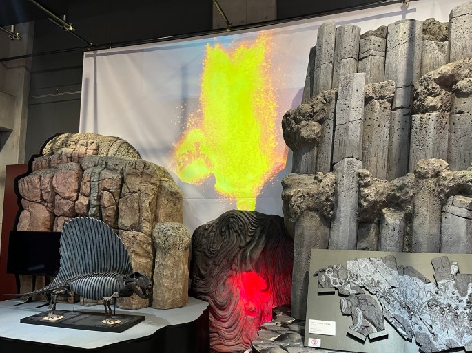 とにかく、地質時代の変遷を非言語的に感じさせる工夫が見えます。