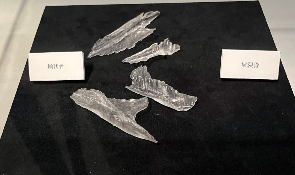 この時期に発表された(Yoshida et al., 2023)ばかりだった鎧竜類 Ankylosauria ピナコサウルス Pinacosaurus のとあるパーツのレプリカ。輪状軟骨(Cricoid cartilage)と披裂軟骨(Arytenoid cartilage)なるもので、咽頭をかたちづくる軟骨だそうです。それぞれ輪状骨と披裂骨とも言うようですが、輪状骨と言うと角竜のフリルでお馴染み鱗状骨と同じ発音なので紛らわしいですね。