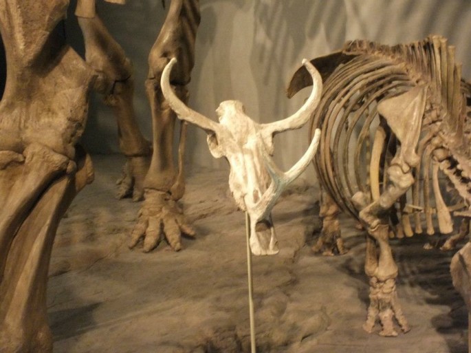 シンテトケラス Synthetoceras の頭骨。哺乳類離れしたツノの組み合わせが良いですよね。ここ以外ではかはくでしか見たことない。