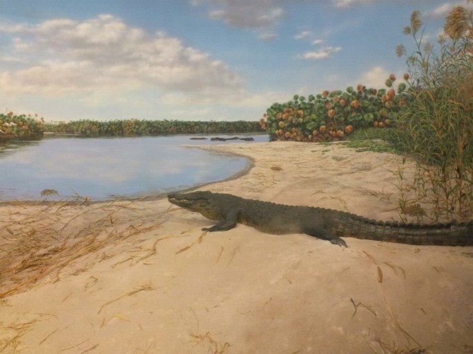 上のパキケファロサウルスのジオラマの脇役に、カメと共に甘んじておられる。
