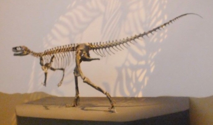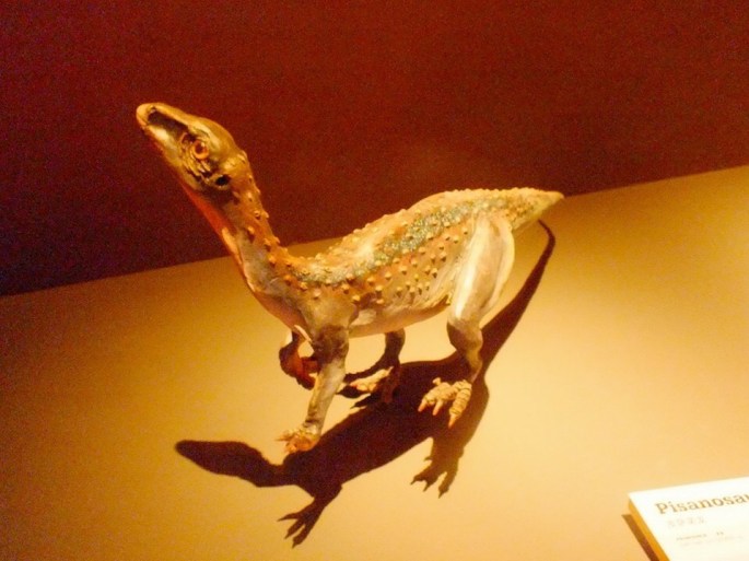 初期の鳥盤類 ピサノサウルス Pisanosaurus の復元模型。恐竜ではなくシレサウルス類 Siresauria かそれに近縁な恐竜様類 dinosaurimorpha という説もあります。