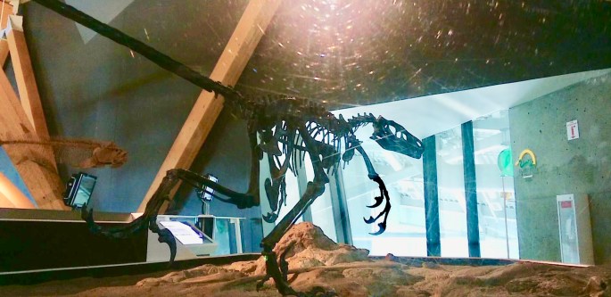 グランドプレイリーはもちろん、ドーソンクリークやパイプストーンクリークで発見された恐竜その他の標本を“数少なく”展示している。一般人なら30分もあれば全部見て回れる。