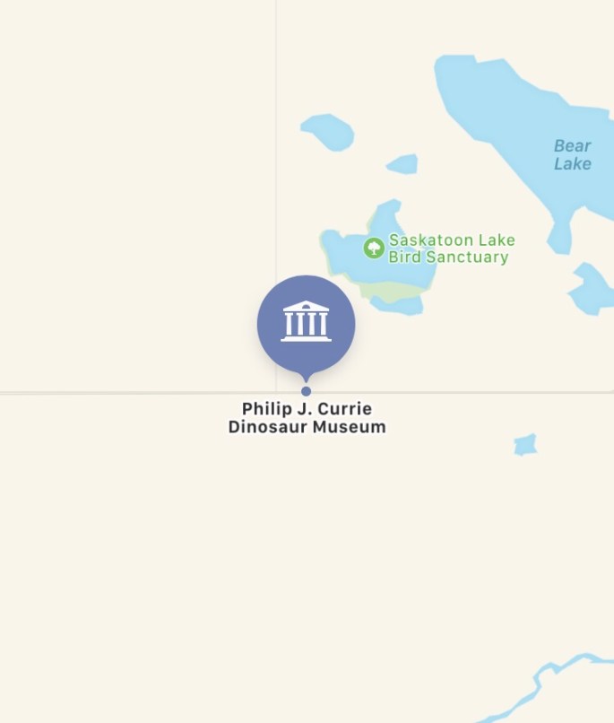 グランドプレーリーのダウンタウンから少し走ったところにウェンブリー Wembley という場所があり、本記事タイトルにある通り、そこにあるフィリップ・J・カリー恐竜博物館 Phillip J Currie dinosaur museum が目的地。カナダの有名な古生物学者フィリップ・カリー博士の名前がついてるんだねえ。うんうんうん。博士の誕生日パーティーなんかもここでやっているらしい。