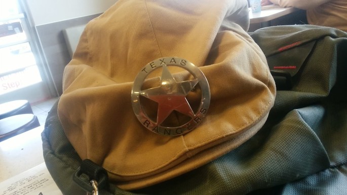 ハンチングはすぐに見つからなくて、「テキサスレンジャーの帽子があったんですけど、見なかったですか?」と尋ねたら。