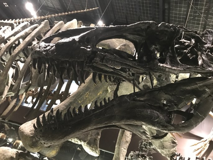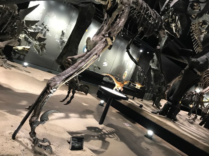 アクロカントは、良く言えば凝縮された展示スペースの中でも際立った威容を晒す存在で、白亜紀前期の北米を支配した最上位の捕食動物です。震災の翌日、出勤した人が床の上で木っ端微塵になったアクロカントの頭を見つけたのだそう。