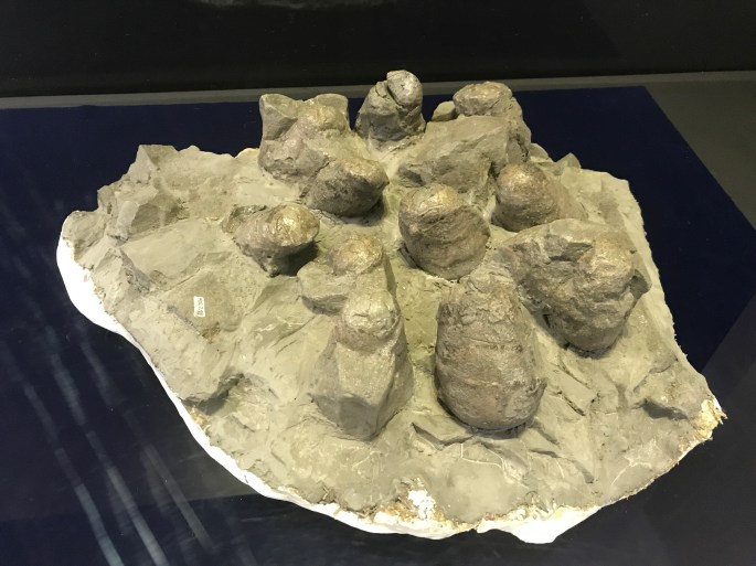 卵の化石。縦長の楕円形。エロンガトーリトゥスだっけね(卵の学名)。
