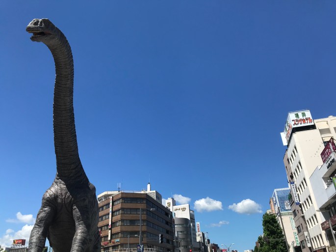 駅前に恐竜の動刻なんて常時置いてるのもここだけではないでしょうか。