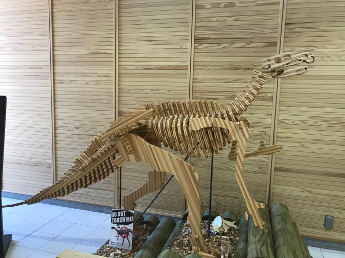 木でできたフクイサウルス。有名な(というか唯一の)復元骨格をもとにしているようですが、よく再現されていると思います。
