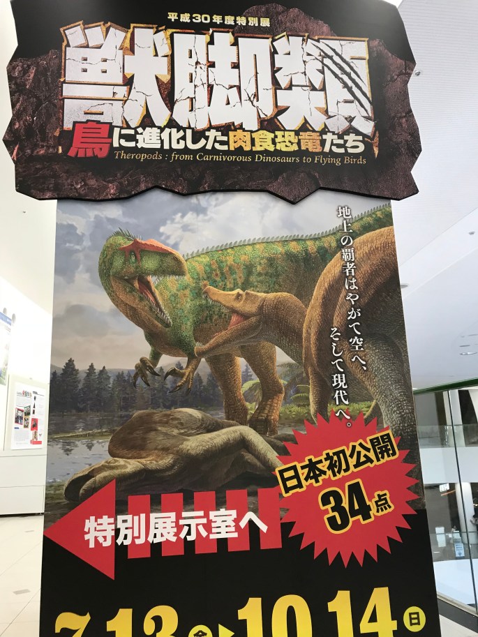予告通り今日から2018年夏の福井県立恐竜博物館の特別展「獣脚類 鳥に進化した肉食恐竜たち」のレポートやります。