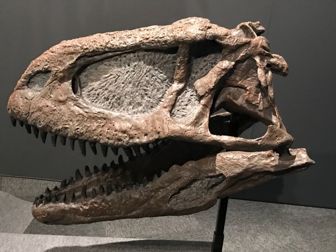 頭しか知られていない獣脚類 アベリサウルス Abelisaurus のその頭。白亜紀後期の獣脚類ですが、鳥に近縁な方のテタヌラ類 Tetanurae とは早い段階で袂を分かったケラトサウルス類 Ceratosauria です。