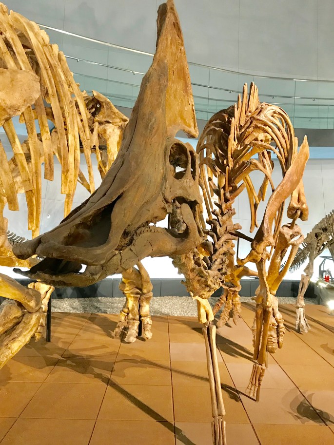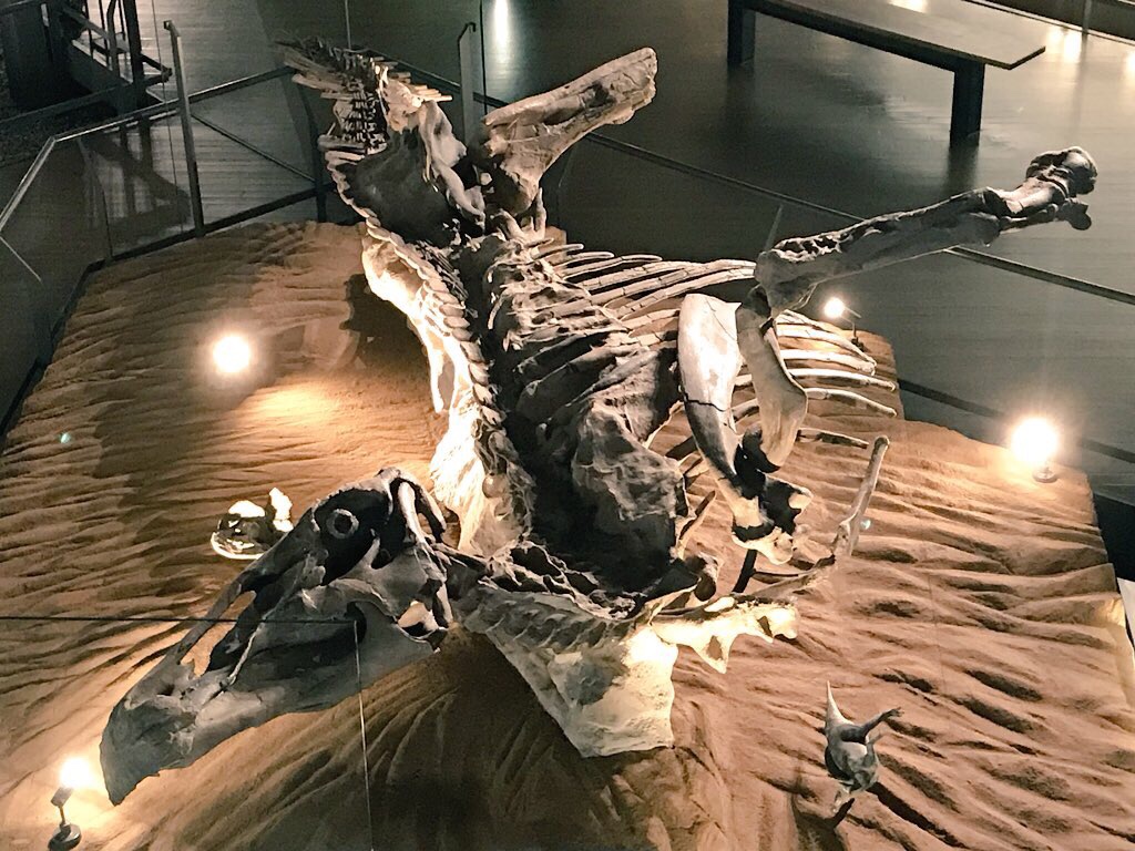 こちらも目玉展示だと僕は思ってます。鳥脚類 ・アンキロポレクシア Ankylopollexia スティラコステルナ Styracosterna ハドロサウルス類 Hadrosauridae エドモントサウルス Edmontosaurus の見事なミイラ化石。この頭や脚が持ち上がってしまっているところが、生きていた感じがしてカッコいいと思いませんか。