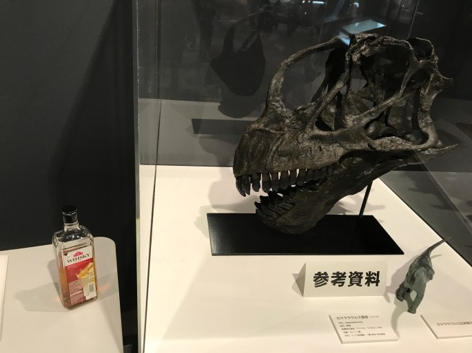 カマラサウルス Camarasaurus 頭骨(となぜか置いてあったウヰスキーのボトル)
