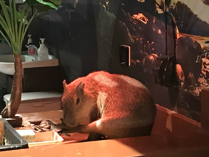 ネコカフェのようなコーナーにいたイエネコ Felis silvestris domesticus たち(おもての壁に野生種の写真があったからそれ系がいるのかと思ったら違った)。