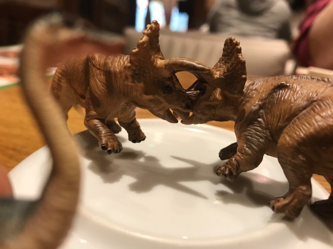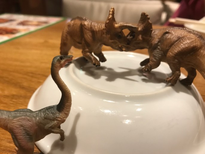 最後にオービィのクレーンゲームでまとめて一発で当てたトリケラトプス Triceratops ×ガリミムス Gallimimus の相撲(ガリミムスは行司の位置付け)でお別れしましょう!