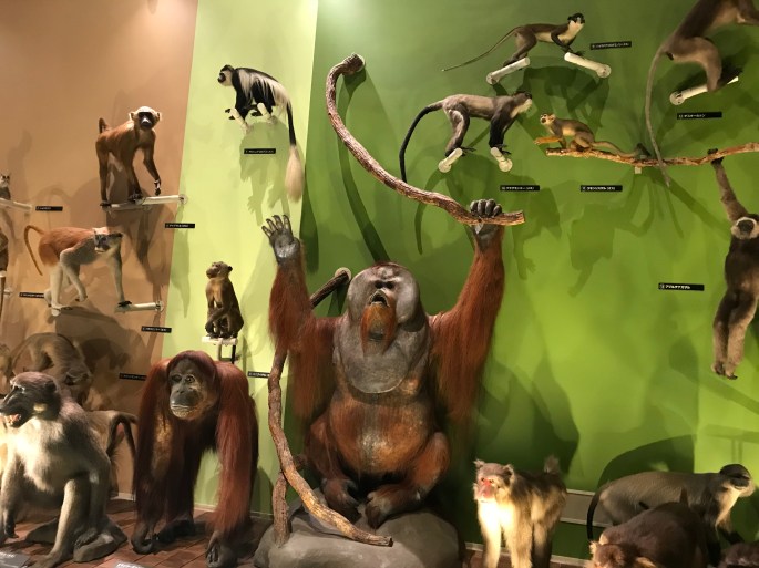 さまざまな霊長類の剥製。
