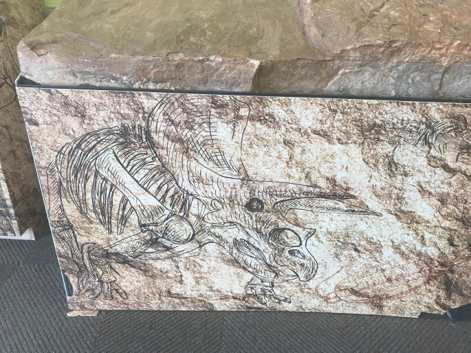 展示台にはなぜかトリケラトプス Triceratops AMNH 5116 (僕が呼ぶところのドイル)をモデルにしたであろう絵が。なんかタッチで欧米人が描いたってわかりますよね🤓
