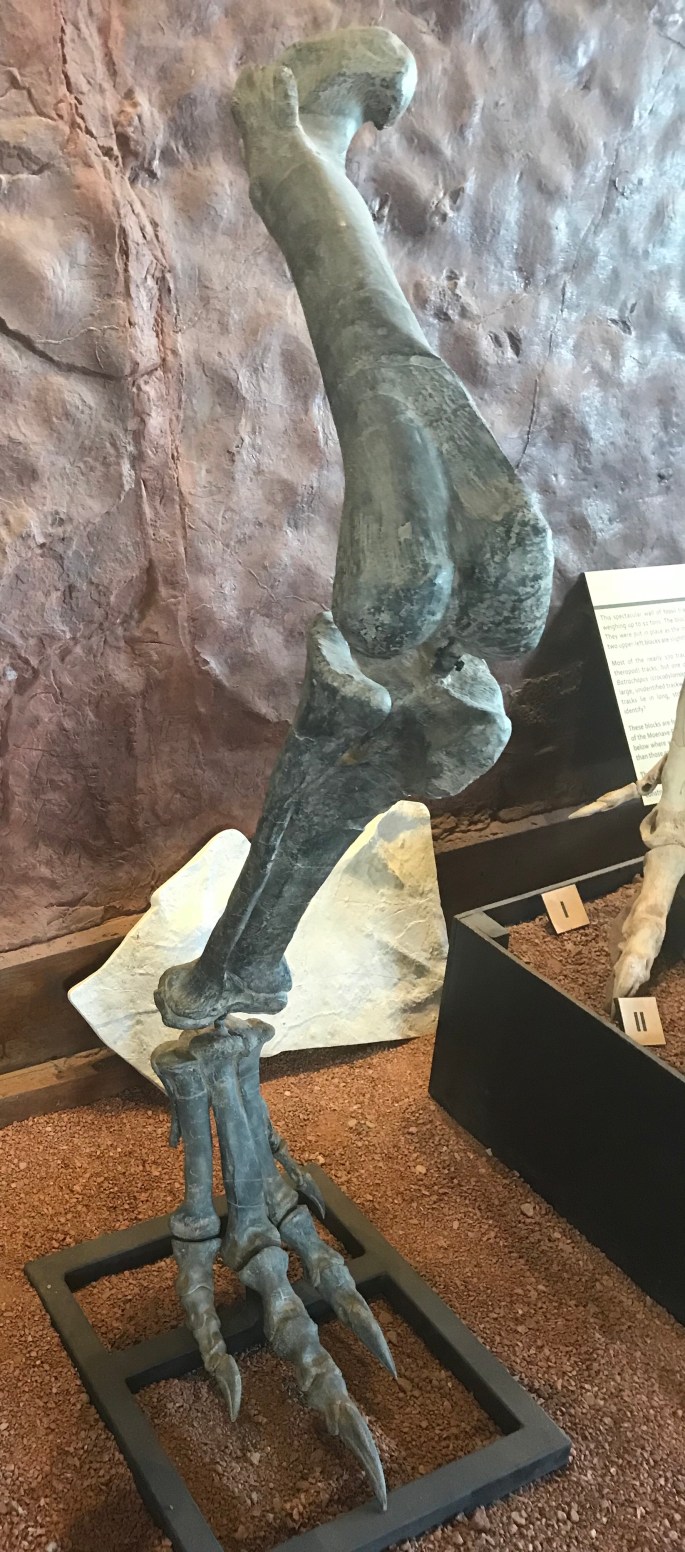 鎌のような第二趾の鉤爪が目立つユタラプトル Utahraptor の後肢。