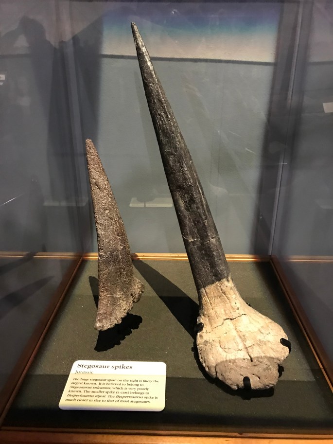 右がステゴサウルス・スルカトゥス Stegosaurus sulcatus とかいうよく知られていないステゴサウルスのもので、このパーツの化石では最大の標本らしいです。