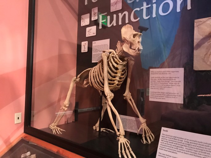 へユアンニアとオウギワシとゴリラの3体が一つのショーケースに入れられていてキャプションで動物の各部位の機能を説明している展示なのです(が、3種類中2種類がペンナラプトラ Pennaraptora なのは偏りを感じる)。