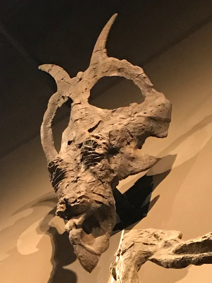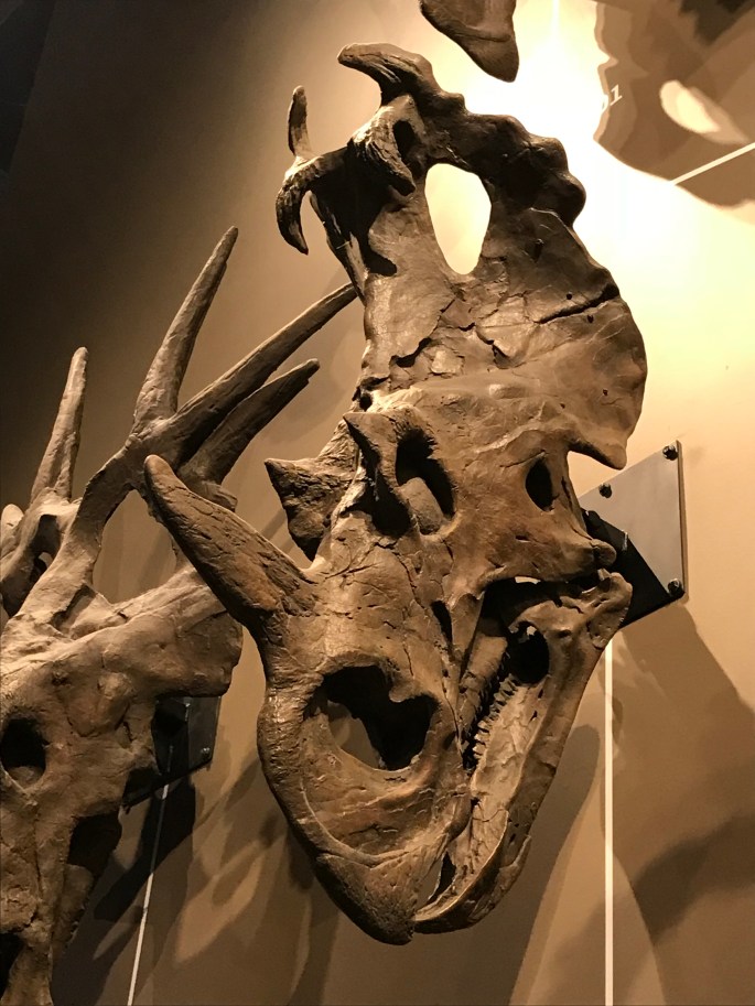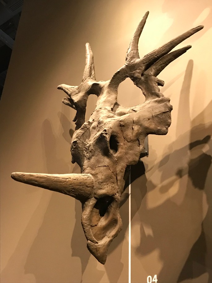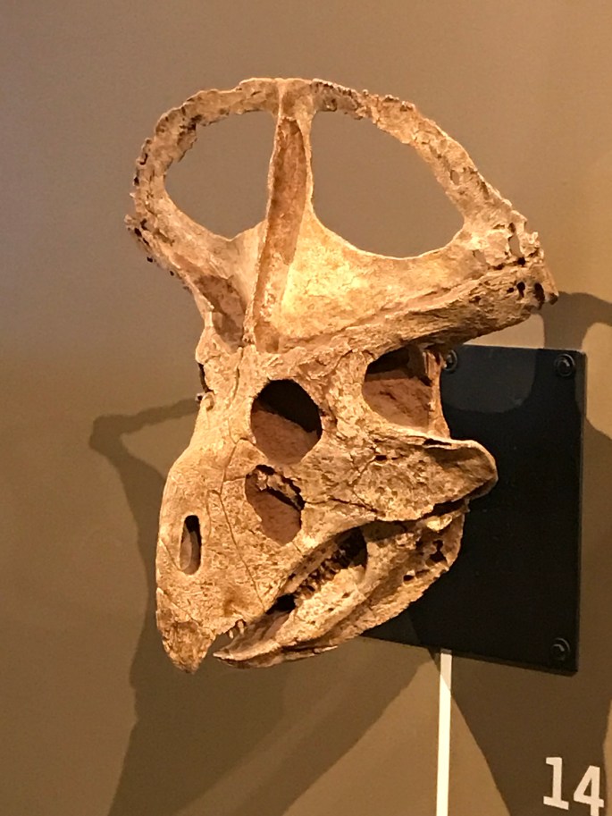ユタ州立自然史博物館は僕の知る限りでは、最も角竜 Ceratopsia ひいてはケラトプス類 Ceratopsidae の展示数が多いのですが、そのほとんどが以下に紹介する「角竜の壁」を構成するメンバーです。
