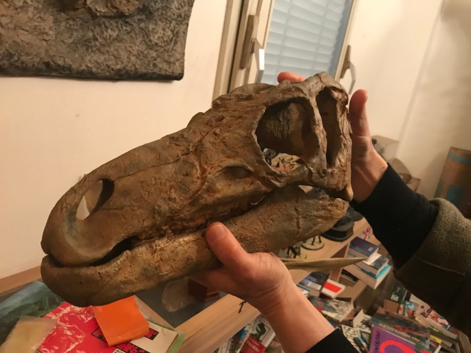 ちなみにUMNHの展示物じゃないですが、アーティファクトで補完された復元頭骨がこちら。恐竜秘宝館の所蔵(田村博さんのコレクション)。変形も修正されてるのかな。