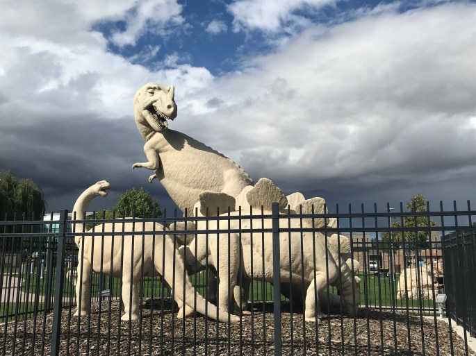 国立恐竜記念公園から近いだけのことはあり、ドラムヘラーほどではないですが町中に恐竜が溢れています。
