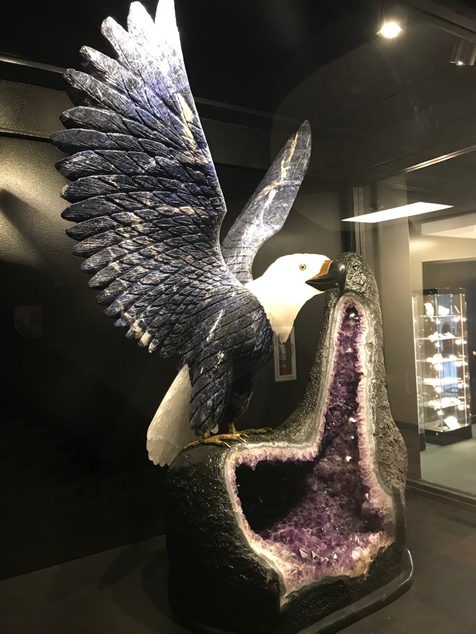 アメジストに乗る宝石でできたハクトウワシ。