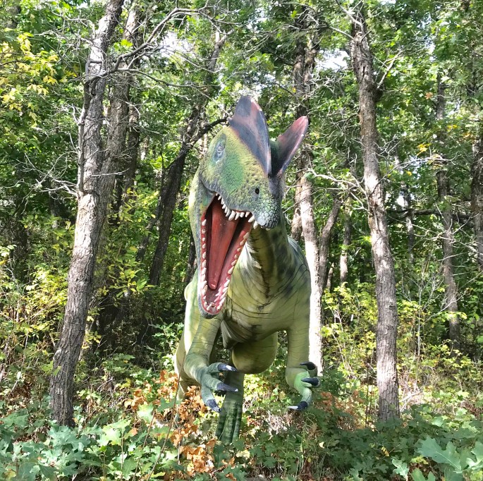 林から飛び出す ディロフォサウルス Dilophosaurus