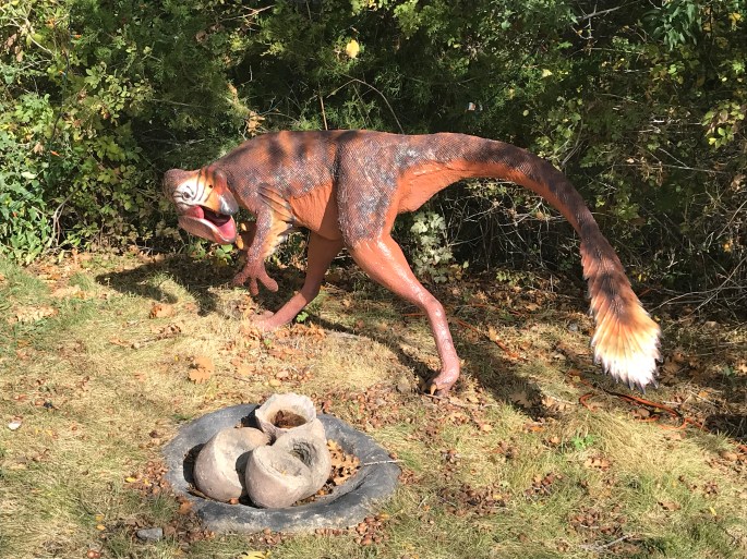 オヴィラプトル Oviraptor とダチョウかなにかの卵。