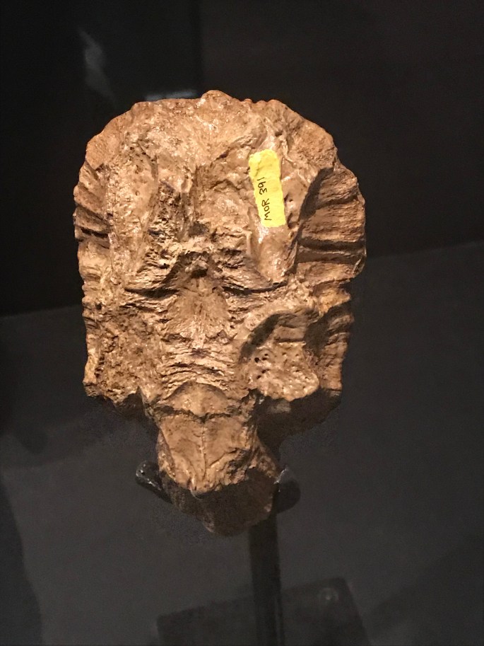 これは何かという問題でしたが、正解は恐竜(ステゴケラス Stegoceras)のドーム(頭頂骨)でした!