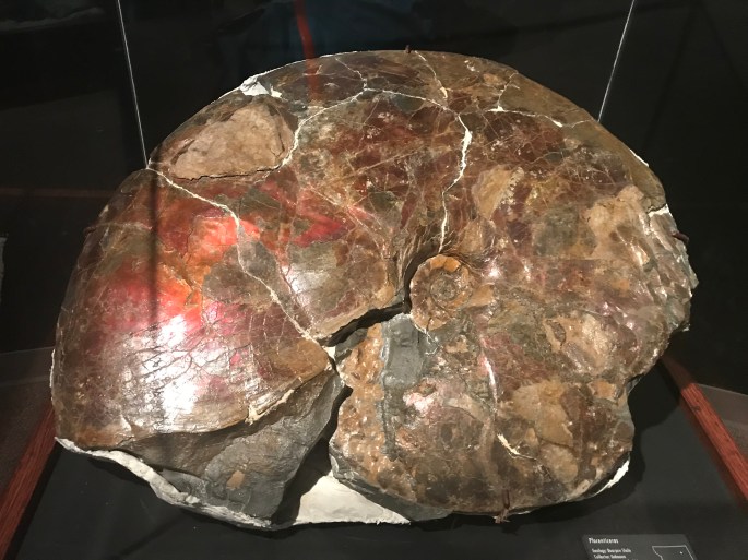 こうなってしまうと宝石としてしか見られないかもしれませんが、モササウルスのエサになっていたかもしれない動物の遺物でもあることを忘れずにいたいですね。どこにいようと。(思ってない)