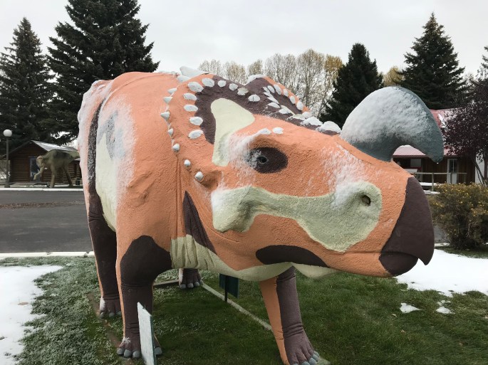 トゥーメディスン・ダイナソー・センターの見学をするつもりだったのですが、10月前半なのにもう冬季休暇に入ってました。もう冬だったんですね。雪も降るわけです。なめてましたね。