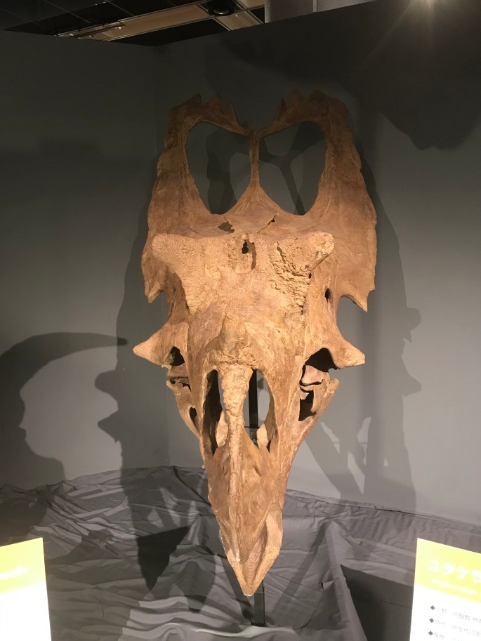 ちなみにここに展示されているナストケラトプス・ティトゥシ、コスモケラトプス・リカルドソニ、そしてユタケラトプス・ゲッティーの3種は全てカイパロウィッツ層から発見されていて、実際共存していたと思われます。生物相を共有していた恐竜にはテラトフォネウス Teratophoneus 、グリポサウルス Gryposaurus、パラサウロロフス Parasaurolophus 、アカイナケファルス Akainacephalus なんかがいました。