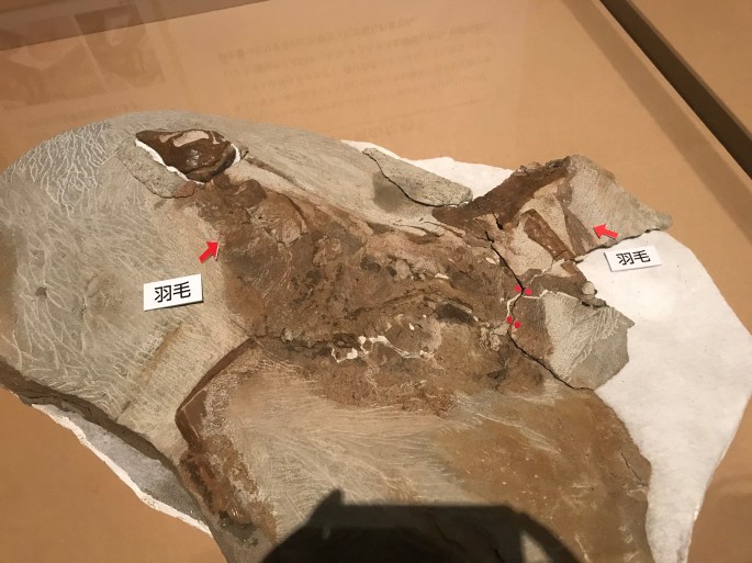 羽毛を残した恐竜化石としては北米初のもの。この発見によってオルニトミムス類は羽毛を生やす復元が常識になっているフシがあります。