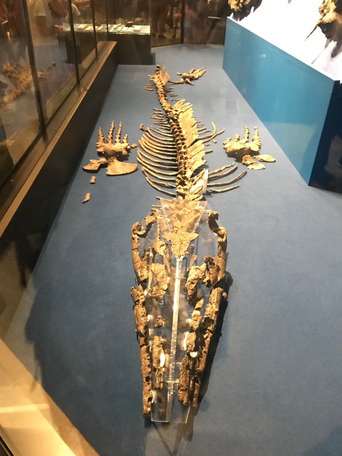 かはくの真鍋博士は復元骨格やら何やらの後にこれを展示するつもりだったそうですが、それだと誰も見ないという指摘をデザイン屋さん(?)か誰かにされて、その方のアイデアで現在の形になったそうです。