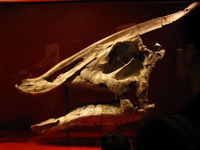 カモのようなクチバシと言えばこのサウロロフス Saurolophus のようなハドロサウルス類がいますが、恐竜の中ではだいぶ遠縁です。