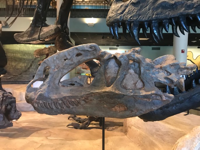 ティラノサウルス(スタン)とトリケラトプス(FPDM V 9677?)の頭骨が仲良く並んでます。