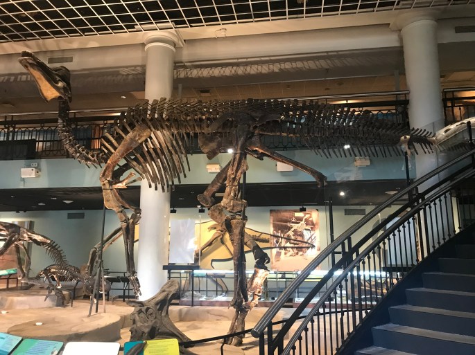 珍しいハドロサウルスのマウント。恐竜の展示室から分けられて特別扱いだったので、研究史的価値から大事にされているみたいです。