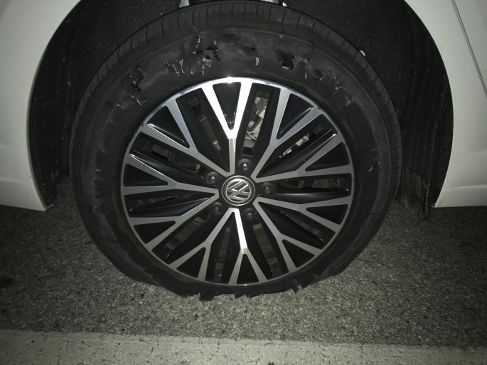 その途中の一般道で右の後輪がパンク!