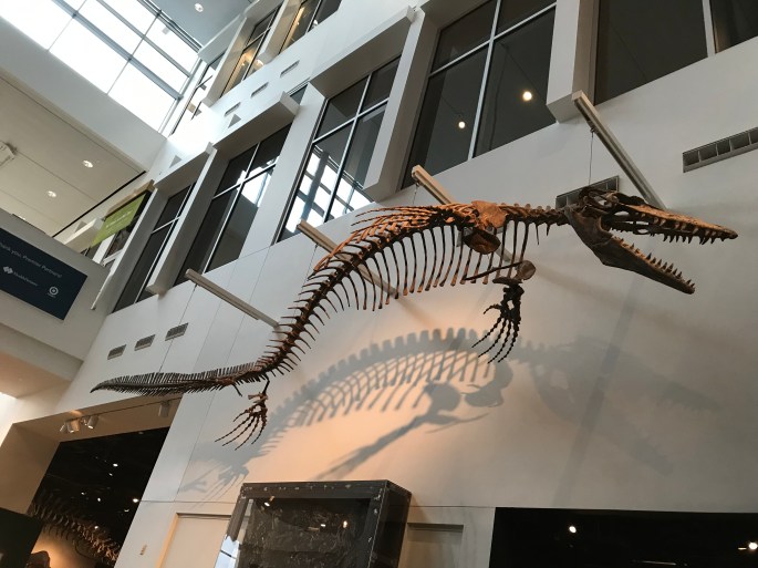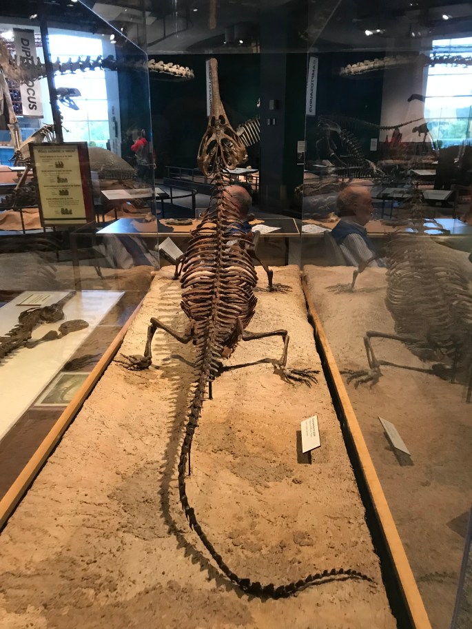 アロサウルスは通路に向かって「やあ」みたいな感じでカンプトサウルスを襲っている風ではないです。あと尾を引きずった姿勢で今時珍しい(日本では大阪自然史博物館で見れます)。
