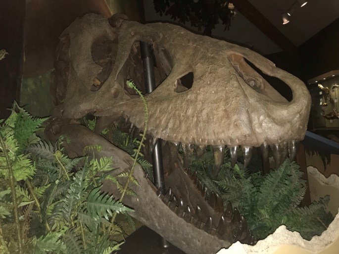 一見ホリドゥス T. horridus のようですが、ヘルクリーク層でホリドゥスは稀なので、園内で見つかったプロルススをホリドゥス準拠で復元したのではないかと疑っていますが、いかがでしょう? 鼻骨より前がアーティファクトなのは確実。