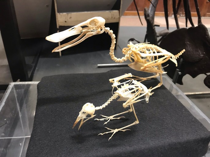 獣脚類 Theropod の方のダックビル、というか正真正銘のカモ(奥)。手前もなんらかの現生鳥類。どういう意図で展示されているかは不明です。