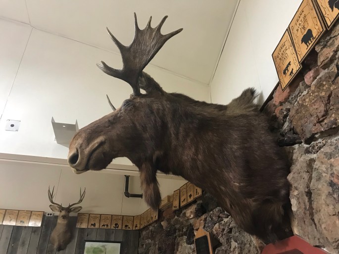 ヘラジカ Alces alces のハンティングトロフィー。あまり角が大きくない個体ですね。