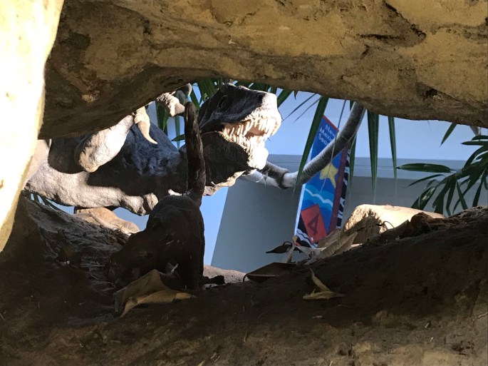大型竜脚類と大型角竜類が共存し、大型竜脚類を襲うティラノサウルスが見られたかも知れません。これは珍しいことです。