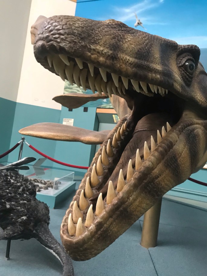 オタクは口蓋歯まで作ってあるか見ちゃいますね。尾がサメみたいに二股になっていた事はわりと最近知られたことなので、この模型ではそうなってないですね(これがいつ作られたか知りませんが)。