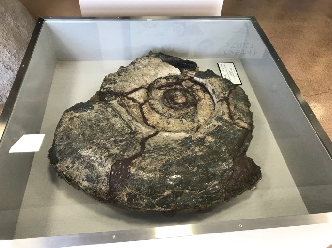 入るとこの愛嬌のあるアンモナイトの模型が出迎えます。色は地味目に優しい。