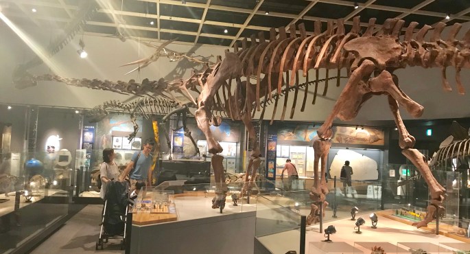 ホール中央に全長17mとそこまで巨大ではない(何と比べるかによる)竜脚類 Sauropod ユアンモウサウルス Yuanmousaurus が立って来館者を見下ろしています。