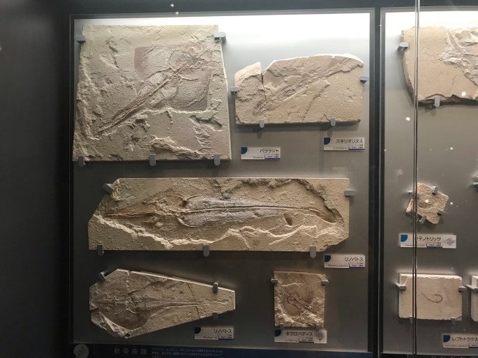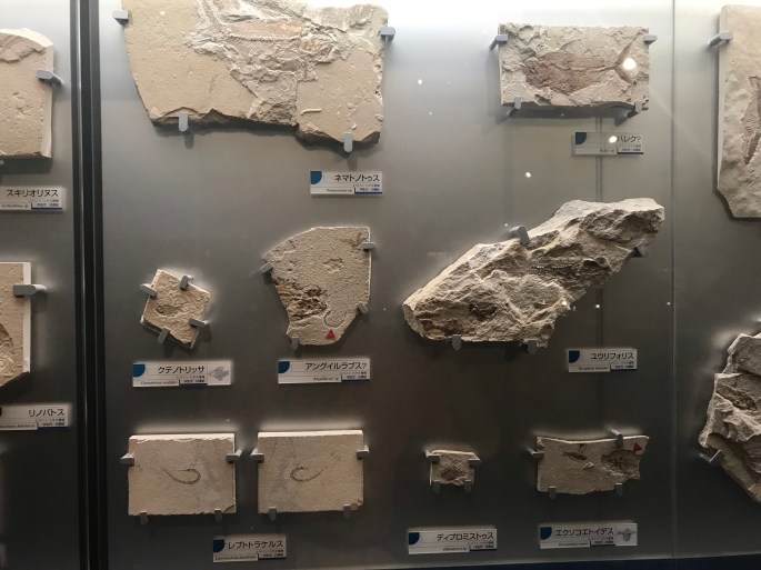 のんほいパークの豊橋自然史博物館レポート3回目。エドモントサウルスに引き続いて紹介していくのは、自然史スクエアから狭い通路を通って移動した先にある展示室です。いろんな化石が展示されていて生命の進化史について勉強できるというホール。